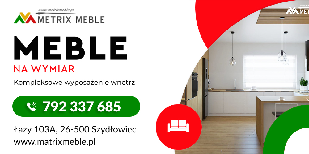 Metrix Meble to firma z wieloletnią tradycją. Jesteśmy solidnym, sprawdzonym i pewnym wykonawcą mebli na zamówienie. Firmę tworzą ludzie zaangażowani w swoją pracę. Nasi eksperci udzielą Państwu profesjonalnych i niezbędnych porad. Każde zlecenie traktowane jest przez nas indywidualnie i z największą dbałością o każdy etap realizacji. Państwa zadowolenie jest dla nas kwestią najważniejszą, dlatego też szczególną wagę przywiązujemy do fachowej obsługi. Do produkcji naszych mebli używamy komponentów najlepszych producentów w Polsce. Akcesoria firmy BLUM obłożone dożywotnią gwarancją, blaty i płyty firmy EGGER, Kronopol Pfleiderer, Kronospan z powłoką antybakteryjną. Fronty meblowe MDF z najdłuższą na rynku, pięcioletnią gwarancją, fronty drewniane oraz szczotkowane, fronty fornirowane fornirami krajowymi i egzotycznymi w kilkudziesięciu odmianach i wybarwieniach, fronty lakierowane mat, połysk, cała paleta barw RAL. Przy produkcji i montażu mebli korzystamy z maszyn i narzędzi renomowanych firm tj.: Felder Group, Rema, Jaroma, Scm, Festool, Hitachi, Makira, Bosch.   Wszystkie te niewątpliwe atuty pozwalają nam wyprodukować meble najwyższej jakości. Oferujemy dogodne warunki ratalne.